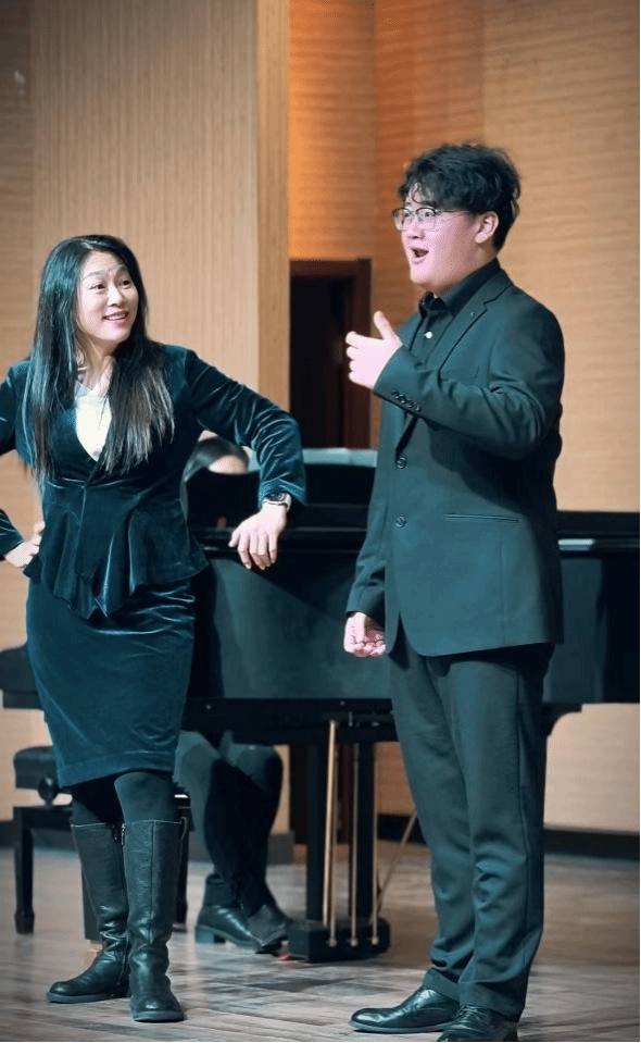 讲座期间,陈冠馥悉心指导了六名学生,她认真倾听学生们的演唱,针对每位学生的发声技巧、情感表达以及舞台表现逐一进行细致入微的点评与纠正。她对同学们的演唱作品的分析细腻到位,如躯体的放松、用力及情感的表达等,从气息的控制到音符的精准把握,从对歌曲内涵的理解到肢体语言的运用,陈冠馥都毫无保留地分享自己的经验与见解,以生动的示范引导学生们领悟音乐表演的精髓,助力他们在艺术之路上不断成长与进步。