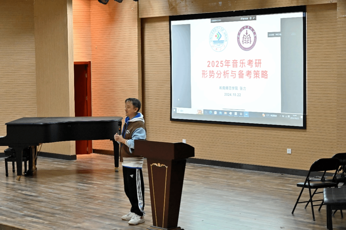 在《2025年音乐考研形势分析与备考策略》讲座中,张力为同学们深入剖析了当前音乐考研的大环境,全面解读了历年报考人数趋势以及各大院校招生政策的变化形势,并详细介绍了音乐考研的各个科目,包括专业课和公共课的备考重点与方法。