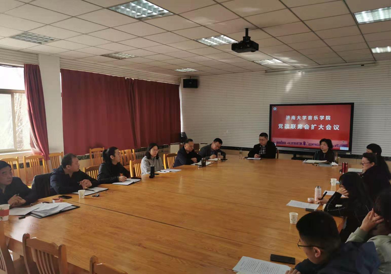 在第一研讨课教室举行党政联席会扩大会议。学院党政领导班子、各系(办)主任参会。会议由学院党委书记刘振主持。