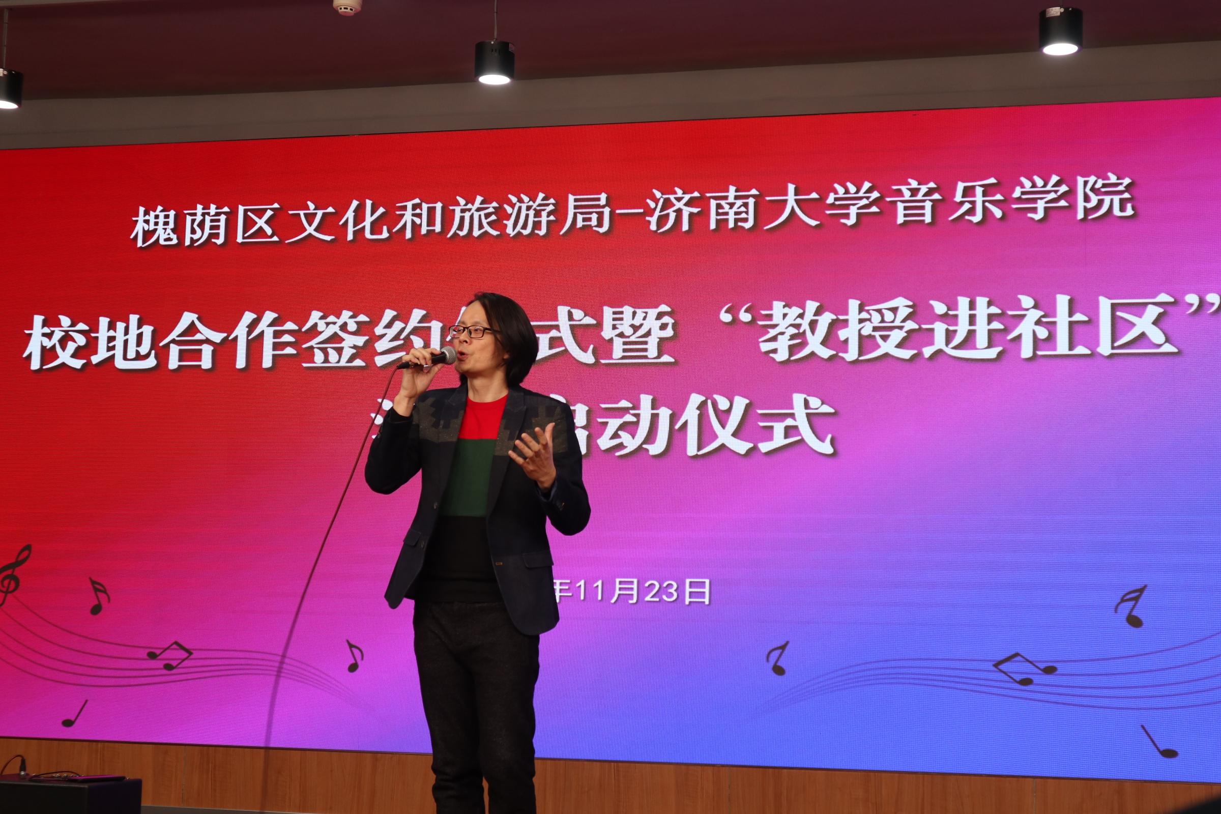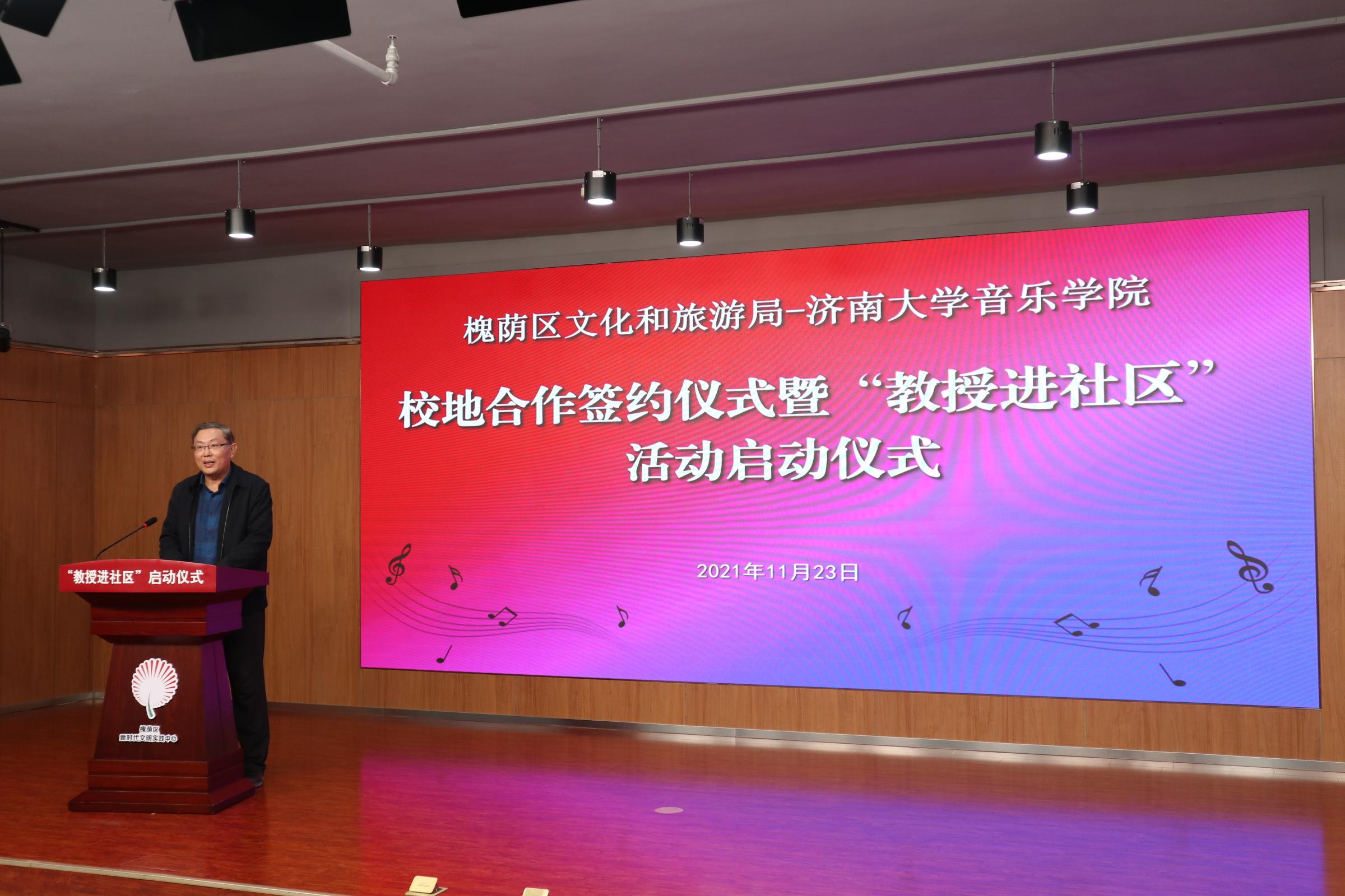 仪式上,济南市槐荫区文化和旅游局局长岳仁强在致辞中对学校表示衷心感谢,他介绍通过校地合作开展“教授进社区”活动旨在加快实现槐荫“文化兴”,由欧美a片