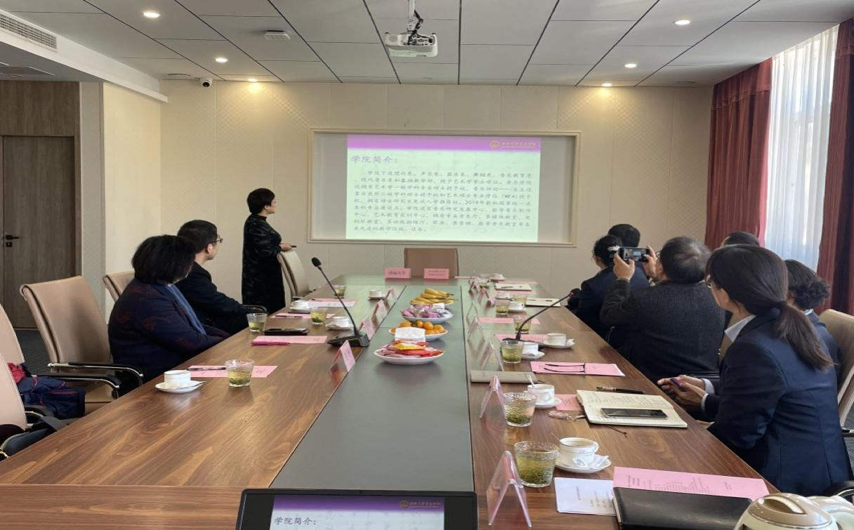 郑中院长简要介绍了新文科背景下中国特色音乐教育专业建设,希望以此次实践基地建立为契机,以音乐教育“新专业”设立为背景,双方从教育教学路径、大中小音乐教育一体化课标建设、师资队伍互动、音乐教育人才队伍建设等方面开拓创新,共同打造“实践教学+文化传承+社会服务”的协同育人新机制,达到双方共赢的教育愿景。王今副院长从招生、专业建设、师资队伍及实践成果等方面介绍了欧美a片