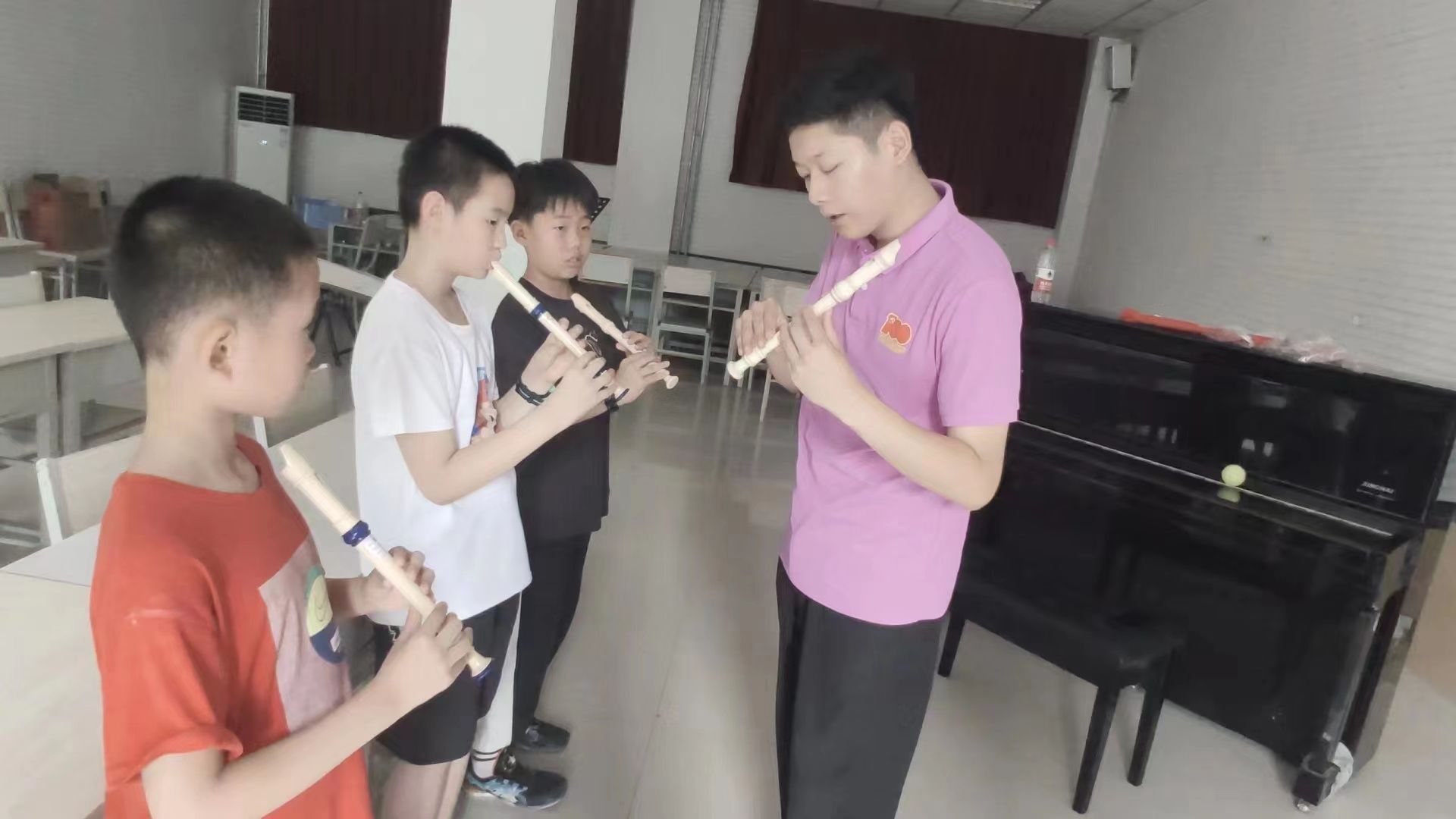 提供的良好的教学场所和优质的教学设施,组成了理论组、声乐组、器乐组、钢琴组、舞蹈组,免费开展舞蹈、音乐、钢琴、器乐等艺术教育。其中,理论包括音乐理论知识讲解与鉴赏,舞蹈包括基本功练习与小剧目排演,声乐包括声乐发声教学与合唱教学,器乐包括器乐知识讲解、 器乐指导等课程。充分发挥了队员专长,丰富了新市民子女的暑期生活,促进他们更好地成长。