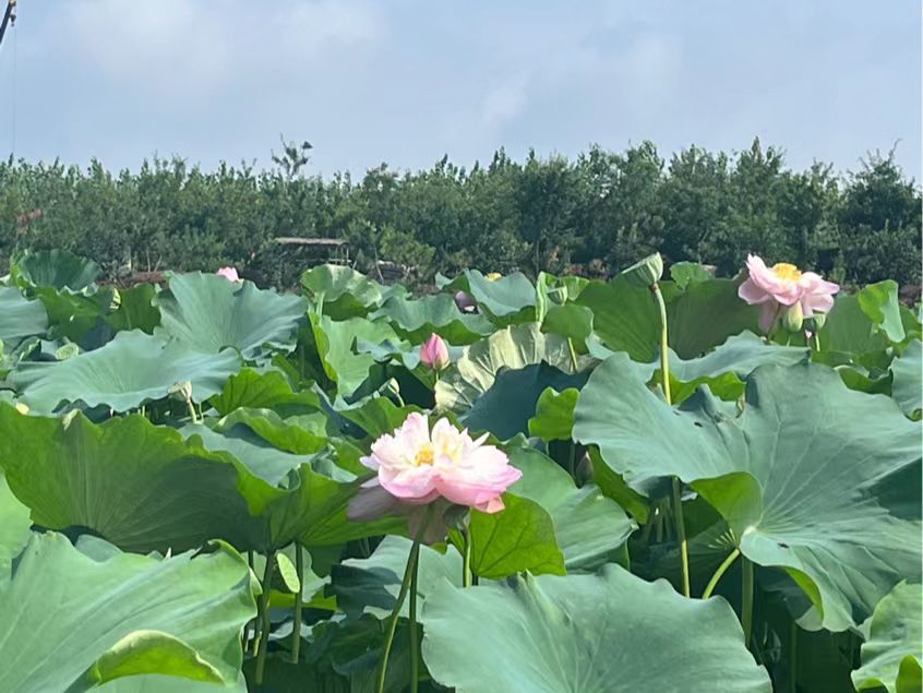 在活动的第三天,我们参观学习了当地高校的农业建设基地。该农业基地属于临沂大学农校对接示范园,园区内包含一体化风车、畜牧养殖基地、生态莲藕种植区等多种农业项目,并以“农校对接”、“家庭配送”为主要输出渠道,形成了良好的生态循环系统,保证了农产品的新鲜度。