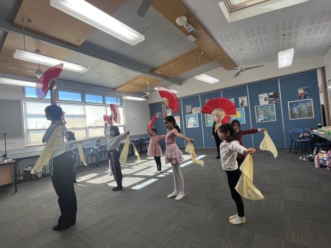 杨阿红在此次活动中为澳大利亚标准中文学校的200多名学员进行了民族舞蹈的授课。课前,杨阿红做了充分的准备工作,灵活调整授课方式和节奏,采用双语授课模式,教会了学员们五个不同风格的民族民间舞蹈,其中最受孩子们欢迎的是《山东秧歌走场》。山东秧歌形式活泼,其中的红扇令当地的老师和同学们爱不释手,红扇是齐鲁舞蹈文化的代表,是火红幸福生活的写照。