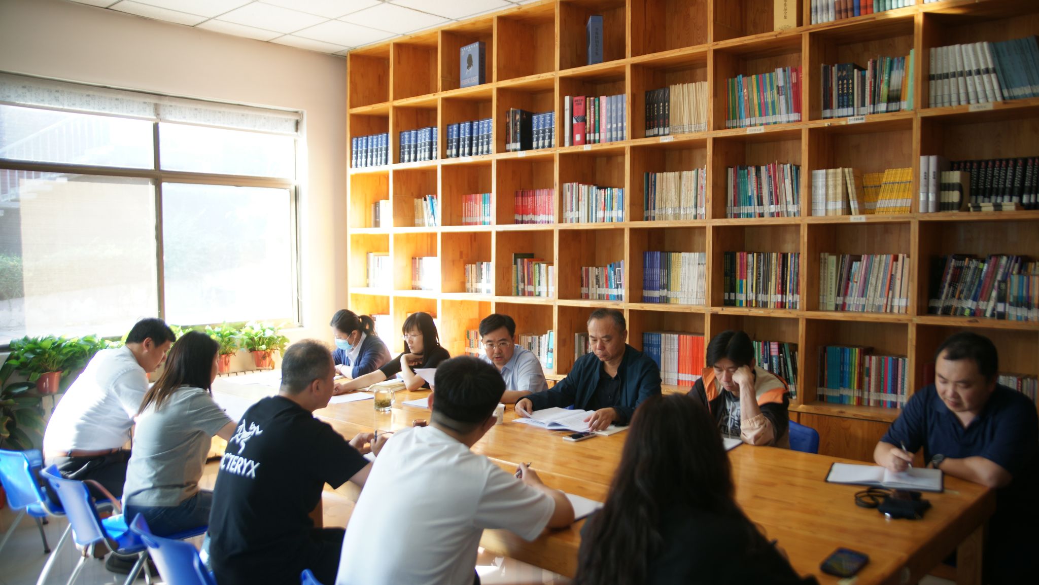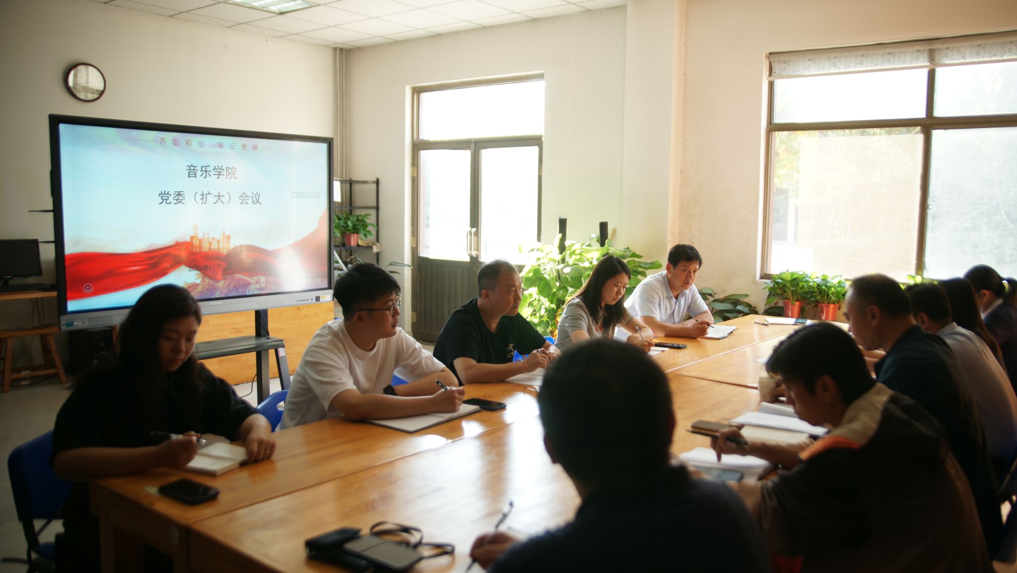 在阅览室召开党委扩大会议,班子成员参加,组织员、教工党支部书记、系主任、行政各办公室负责人列席了会议。党委书记孙翔玲主持会议,