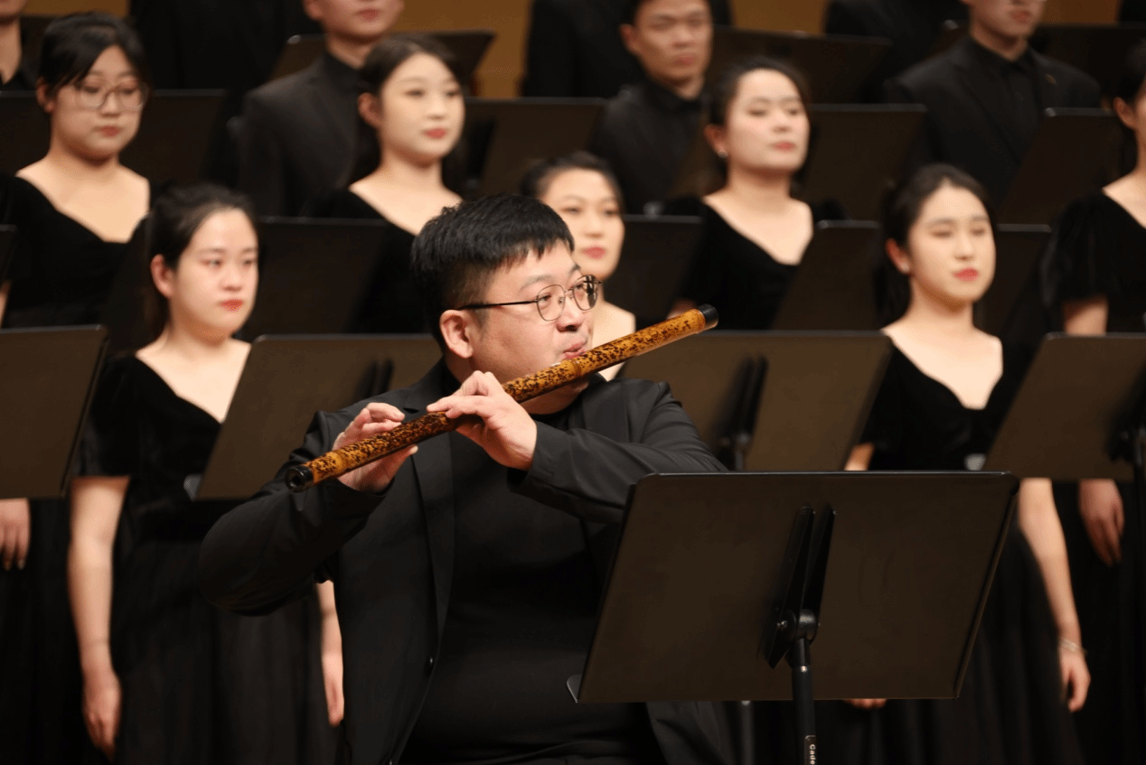 的师生们用合唱对经典诗词进行了审美阐释,长笛在《一剪梅-红藕香残玉簟秋》中如同天籁之音,音色清新脱俗;《醉花阴》让我们再次走进宋代女词人李清照的心灵世界,再现了相思与别愁的意象;《子衿》的浪漫气息充满了古典美的韵味,歌声展现了心中的渴望;《观沧海》则融合打击乐与多声部合唱,不仅展现了时不我待的紧迫感与共创一流的雄心壮志,更是借助合唱营造了意味隽永的意境。接下来的流行合唱将流行音乐的时尚元素融入多声部的编创,展现时尚灵动的气息和蓬勃向上的朝气,给人们带来全新的音乐体验。在“家国情怀”段落中,济大人歌以咏志,用《我站在铁索桥上》《沁园春·雪》《我的自白书》《我爱你,中国》《没有共产党就没有新中国》五首红色歌曲来缅怀革命前辈,传承红色文化,歌声中洋溢着对党的忠诚和对祖国的热爱。
