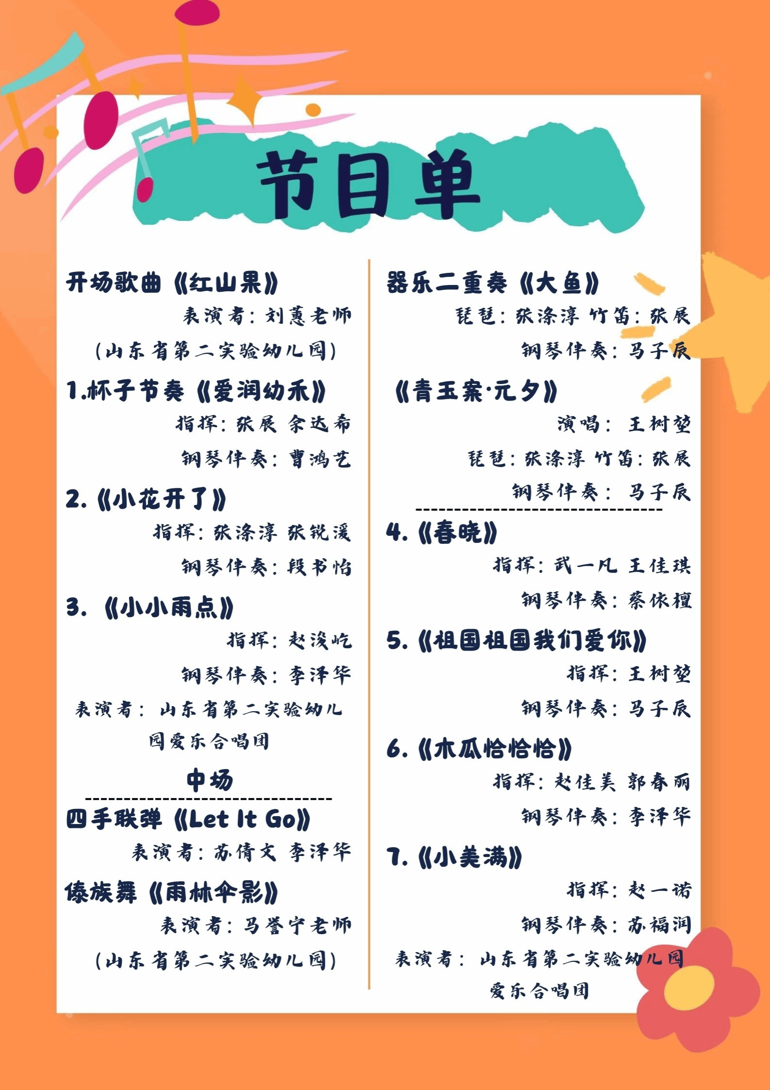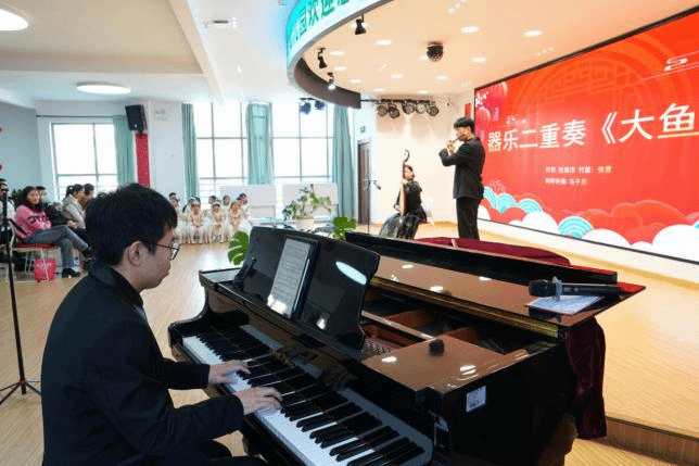 在中场环节,由23级研究生以及山东省第二实验幼儿园马誉宁老师为观众分别带来节目欣赏四首联弹《Let It Go》、傣族舞《玉林伞影》、器乐二重奏《大鱼》以及器乐和声乐联合表演的《青玉案·元夕》。