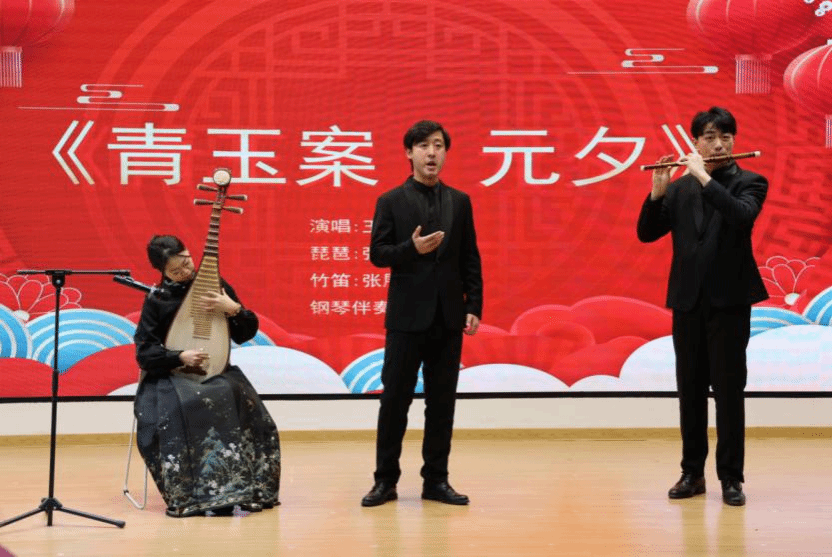 《青玉案·元夕》是南宋词人辛弃疾的作品,这首词描绘了元宵节的繁华景象,并通过对比反衬出一个孤高淡泊的女性形象,表达了作者政治失意后的苦闷以及对恢复中原的爱国之情。23级研究生以演唱、竹笛琵琶的合奏的形式呈现,加以钢琴伴奏,将这首词的意境和情感表现得淋漓尽致,展现了兼具气势与美感的音乐风格。