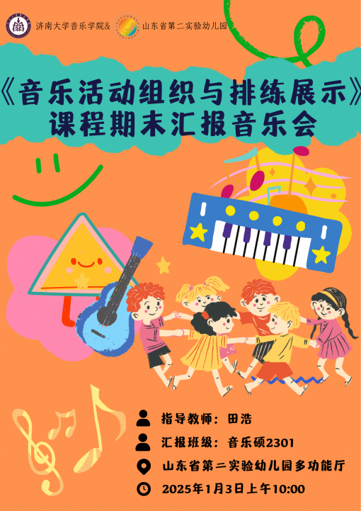 研究生得到更高质量、更有特色的发展,进一步推动协作类课程与开放型实践课程,在本学期开设的《音乐活动组织与排练展示》课程中,田浩老师带领23级研究生走进山东省第二实验幼儿园进行为期一学期的教学实践,并在2025年1月3日联合山东省第二实验幼儿园成功举办课程期末汇报音乐会,欧美a片