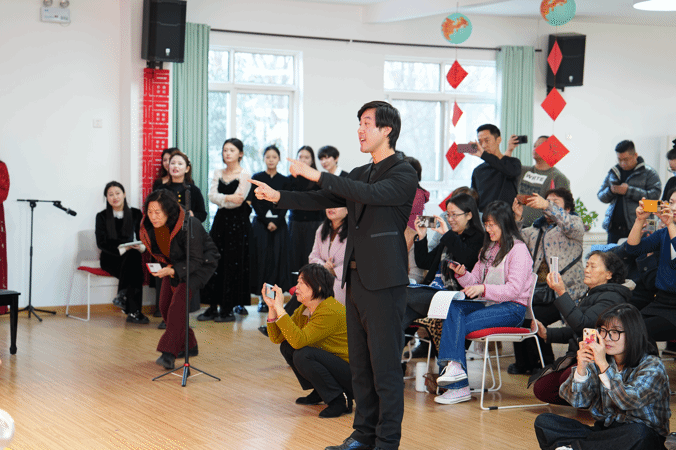 本场音乐会由山东省第二实验幼儿园孙晓杰老师和23级研究生王树堃担任主持。音乐会伊始,由田浩老师上台发言,对本学期的课程教学实践进行了总结并感谢山东省第二实验幼儿园这一平台的支持,给予了第二实验幼儿园爱乐合唱团小朋友们高度的评价。随后在山东省第二实验幼儿园刘蕙老师演唱的优美歌曲《半壶纱》中,音乐会正式拉开序幕。