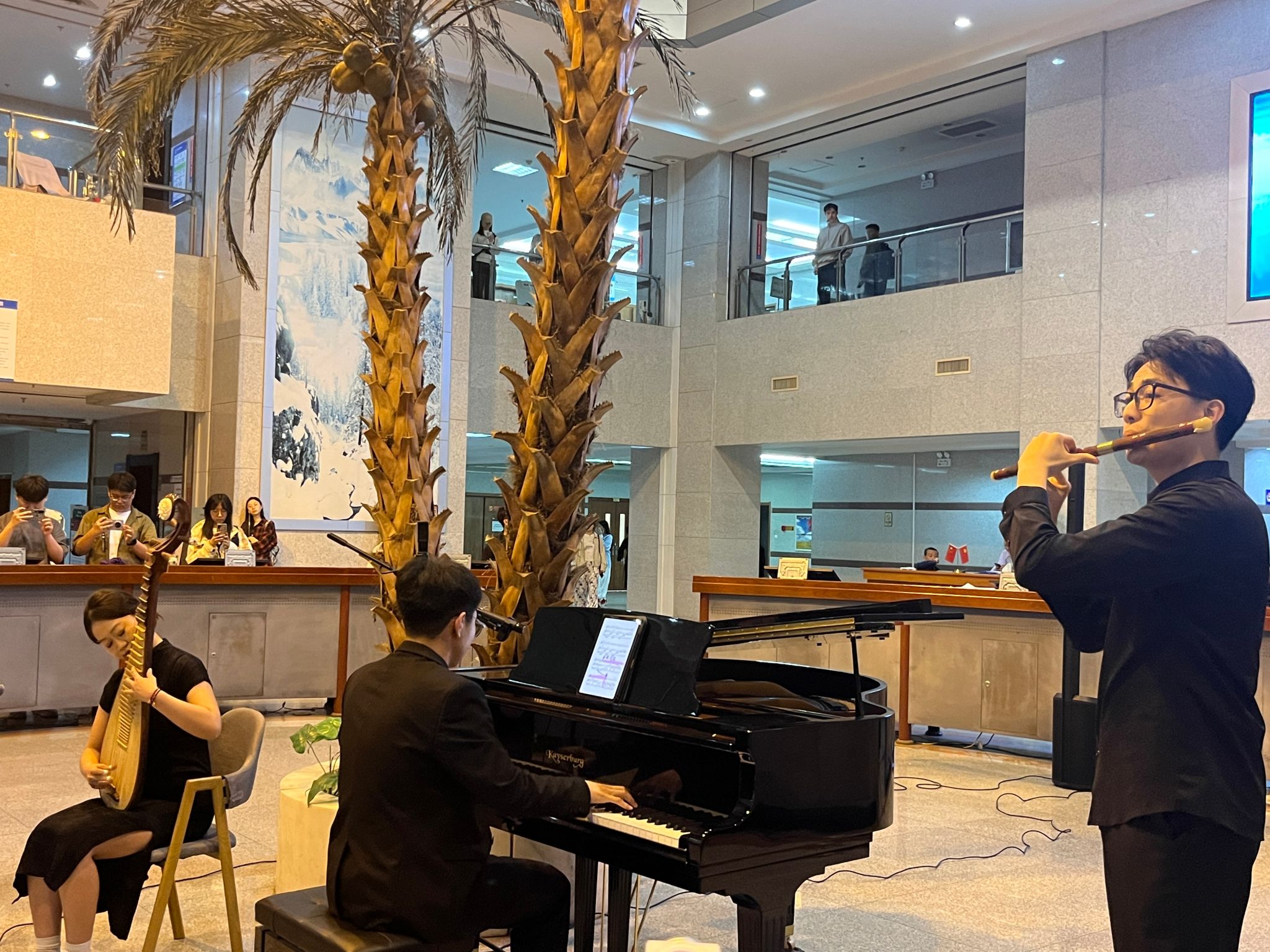 民乐午间秀吸引了众多师生驻足,大家感慨“传统器乐太有味道了,听着熟悉的影视金曲用民乐演奏出来,感觉很新奇”。通过自己的专业让更多人领略到传统民族乐器的魅力,为传承弘扬中华优秀传统文化、增强民族自豪感与文化自信略尽绵薄之力,参演的同学们也倍感自豪。