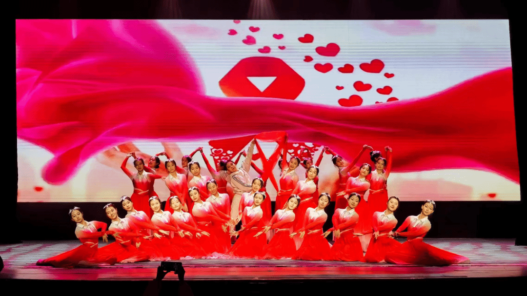 "爱你的人,就叫红丝带",随着音乐响起,舞台灯光倾泻而下,柔和的光芒包裹着起舞的少女们,轻捷地脚步不停旋转,红白的舞裙飘摇曳曳,领舞手中的红丝带随着衣袖的甩开,飘飘荡荡凌空而下,抒发着对艾滋病人的关爱与支持。