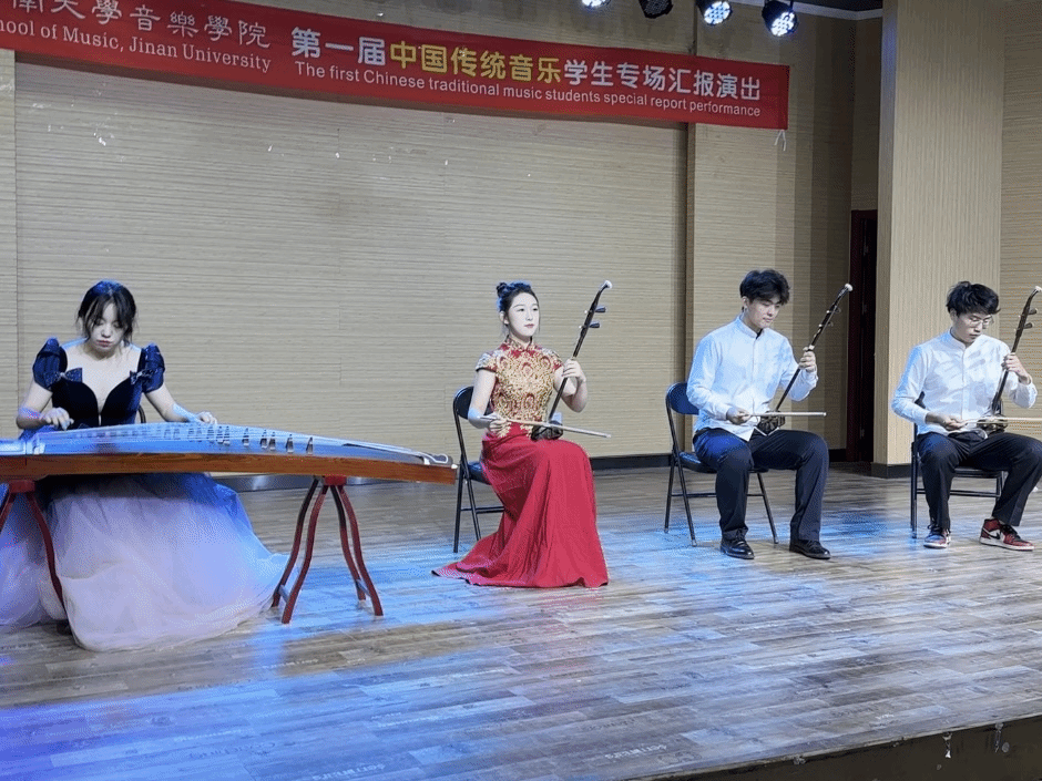 器乐系同学在比赛中的风采令人印象深刻,而在参与的第一届中国传统音乐学生专场汇报演出中,更让大家领略到了中华传统音乐的魅力。此次演出以“传承国粹,弘扬文化”为主题,器乐系同学们表演了多首地方经典传统音乐作品。通过这次演出,同学们更加深入地了解了传统音乐的内涵和魅力,也更坚定了自己的艺术追求。