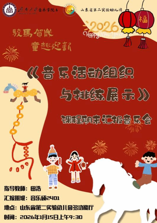 为深化音乐硕士实践育人成效,提升研究生音乐活动策划、编排与舞台呈现的综合能力,在本学期开设的《音乐活动组织与排练展示》课程中,田浩老师带领2024级研究生走进山东省第二实验幼儿园进行为期一学期的教学实践,并于2026年1月15日联合山东省第二实验幼儿园成功举办课程期末汇报音乐会。山东省第二实验幼儿园副园长刘菲、副园长郭志杰,欧美a片