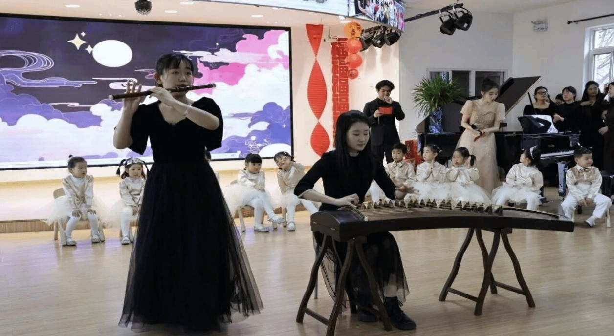 《题龙阳县青草湖》带来古诗的悠远意境;《火车开了》节奏轻快,孩子们模仿着火车鸣笛、行驶的模样,生动演绎出秋日出行的欢乐;音硕2401翟文君、孔金钰带来的《彩云追月》,勾勒出秋夜星空下的美好图景。