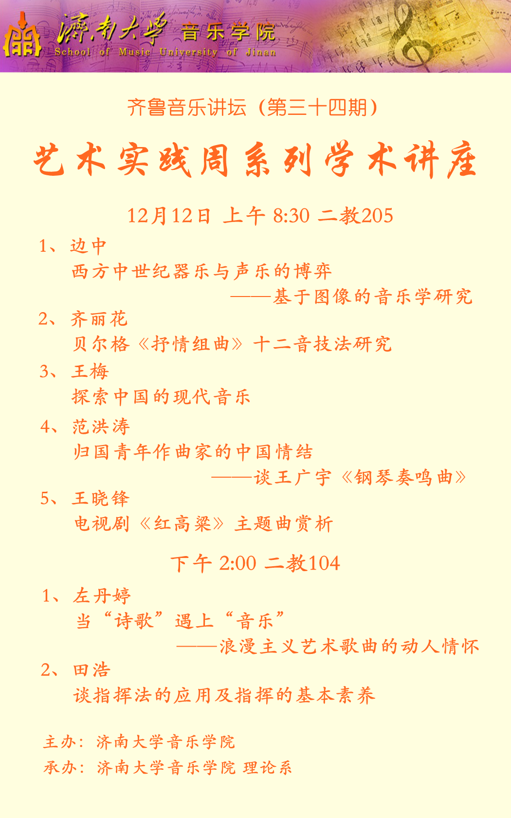 欧美a片 艺术实践周之齐鲁音乐讲坛(第三十四期)系列学术讲座通告