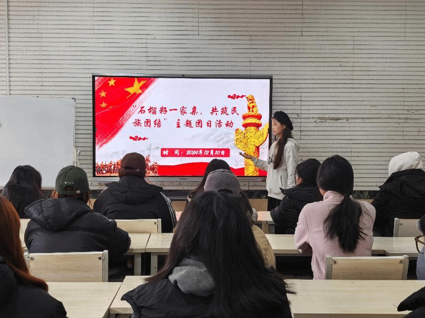 于12月10日隆重举行“石榴籽一家亲,共筑民族团结情”主题团日活动。本次活动由院团支书代表程姿蓉主持,学院部分团员及青年骨干出席此次活动。