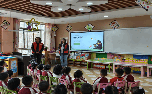 活动通过寓教于乐的形式展开。志愿者们以生动有趣的环保故事开场,结合动作舞蹈带领孩子们学唱环保儿歌,在轻松互动中传递保护环境的重要性。随后,志愿者李帅豪向小朋友们讲解有害垃圾的分类知识,解小雨则组织“四色垃圾桶”垃圾分类比赛。孩子们在游戏中热情参与,通过实践快速掌握了垃圾分类的基本方法,现场欢声笑语不断。
