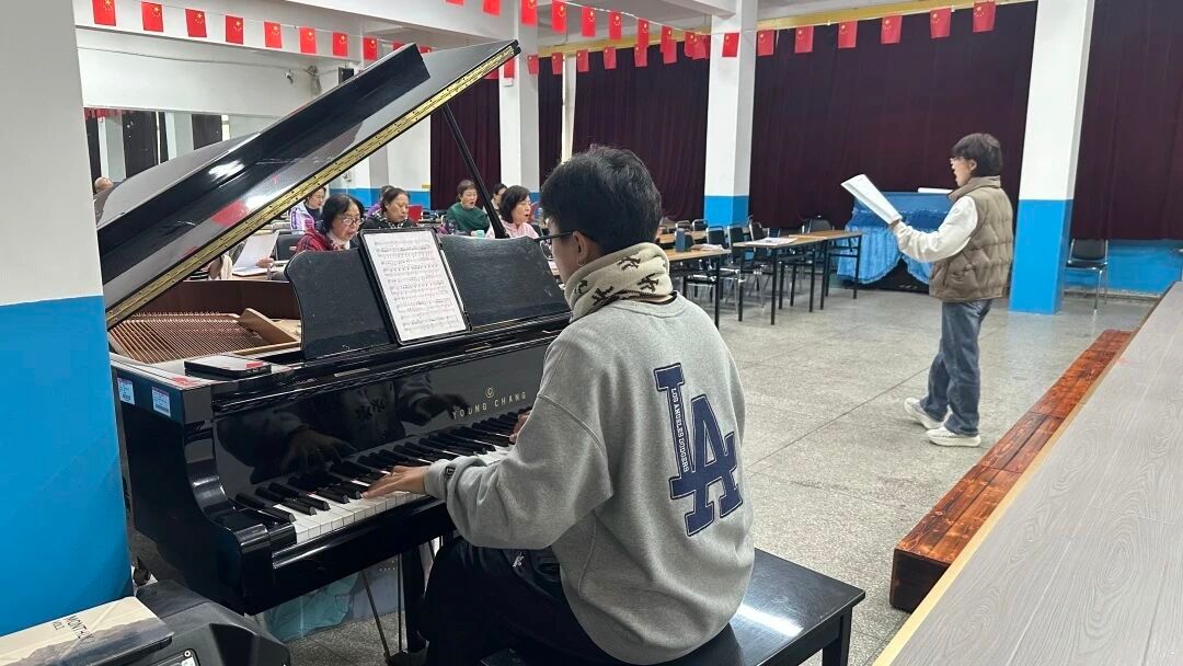 学生柏淇舜与李安珂受邀前往校离退休处,为退休教师合唱团担任钢琴伴奏。用悠扬琴声为退休教师们的合唱时光增添温情,既践行了敬老爱老的传统美德,也让学子在实践中传递音乐的温暖力量。