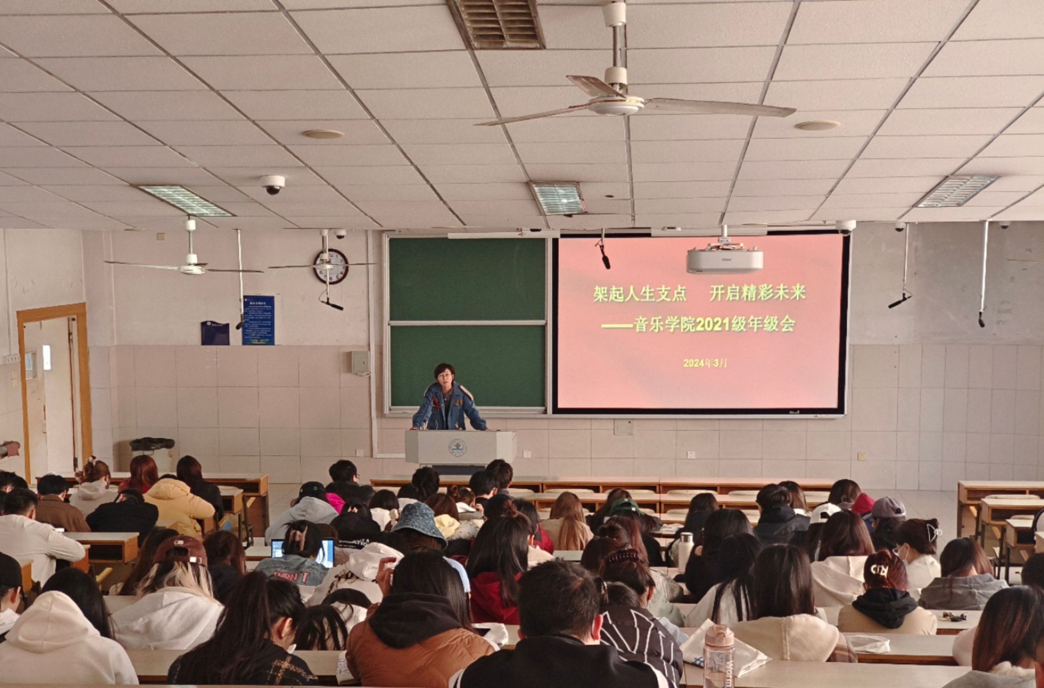 于2J303教室召开2021级年级大会。本次大会由辅导员宋莉璐主持,全体2021级学生参加会议。