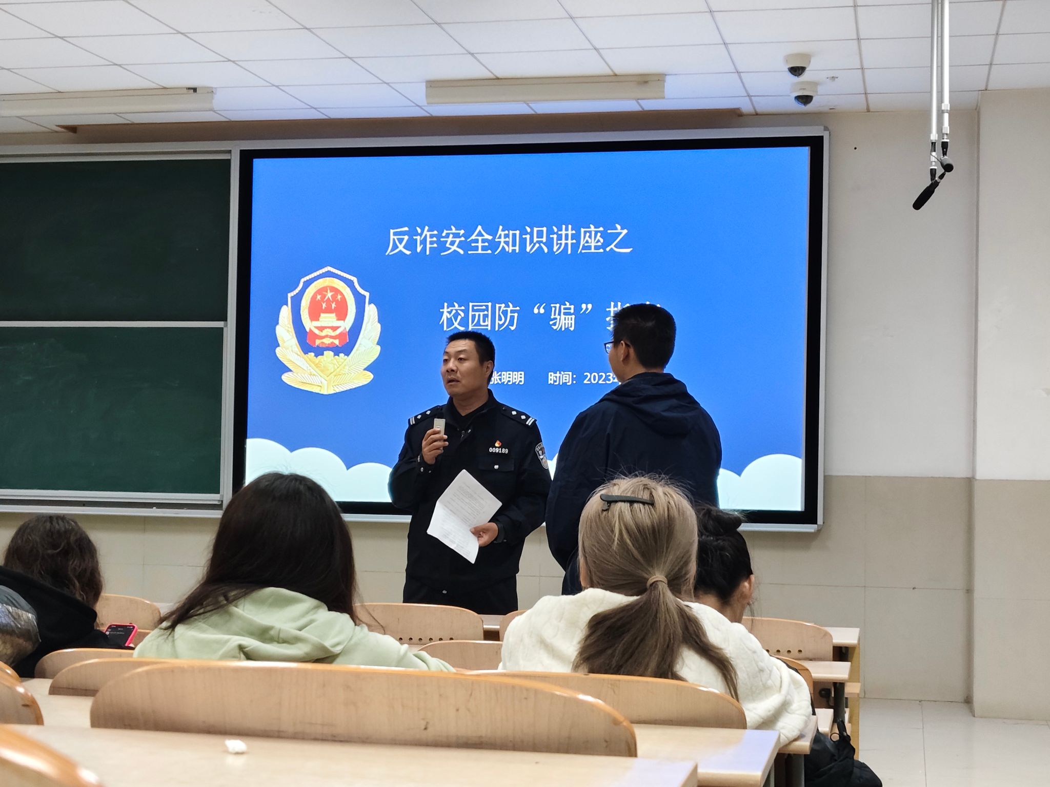 民警张明明同志,开展校园防“骗”主题大学生安全教育讲座。